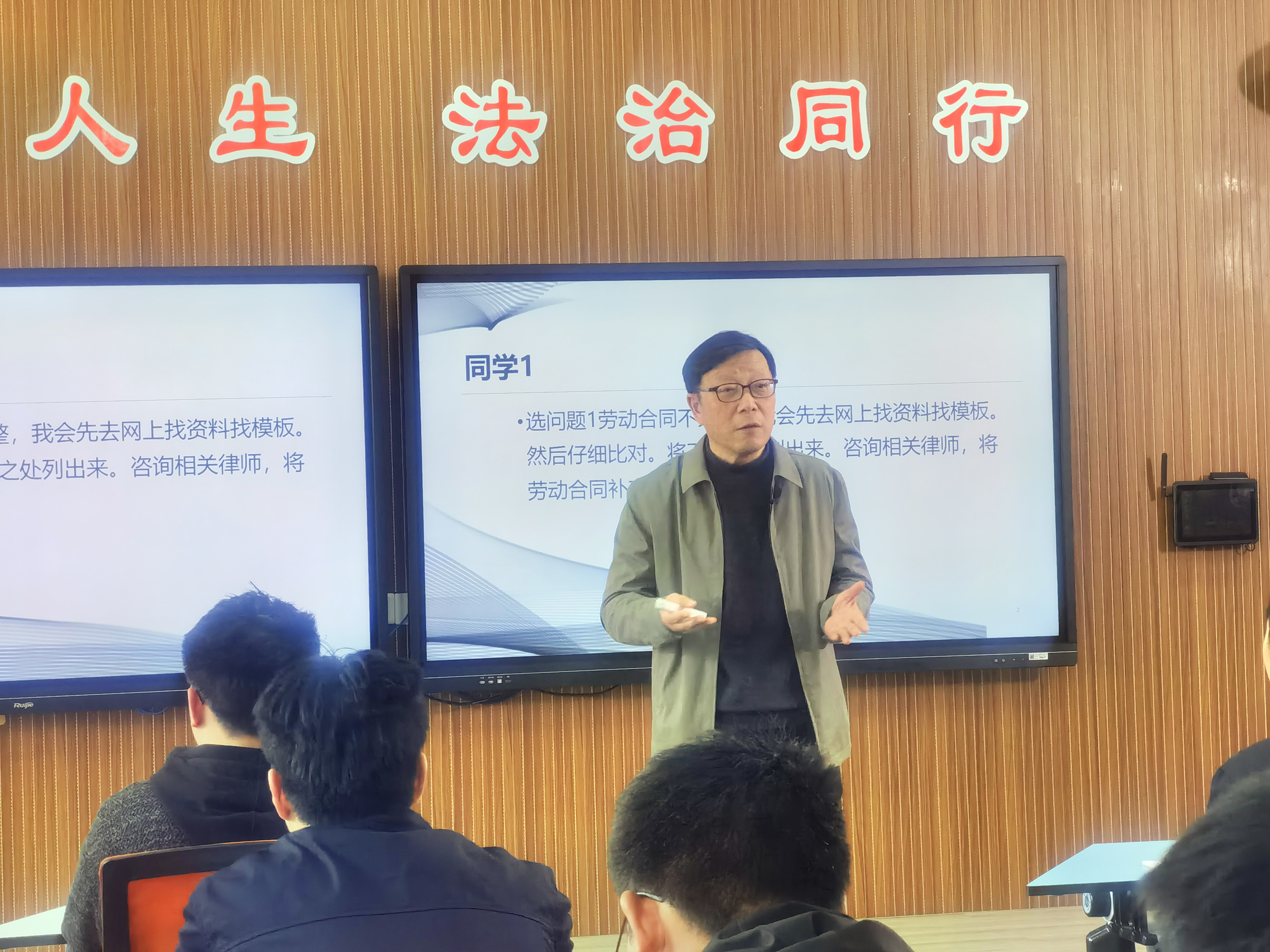 《职场护法》是我校公共基础学院继《你我职业人》之后,按照“一课多师、接力教学”教学模式开设的又一门全新的通识课程。课程通过“点”上聚焦职场具体场景,“线”上串联法律通识课程,“面”上贯通学科职业特色,由七位具有法学专业背景的思政课专任教师与学生一起探讨职场“求生”秘籍。在讲授中,诸位教师不仅“晓之以理”, 还“动之以情”,不但让学生学到职场上的法律知识, 还帮助其树立正确法律信仰和法律意识,为其今后顺利步入职场保驾护航,让通识课堂走“心”走“深”更走“实”。