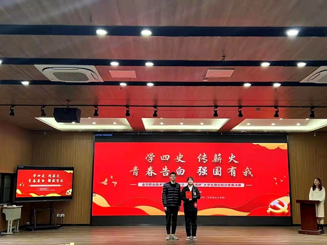 为深入贯彻落实习近平总书记在党史学习教育动员大会和庆祝中国共产党成立100周年大会上的讲话精神,在大学生中广泛开展“四史”宣传教育,2021年11月11日晚,由校党委宣传部、团委共同主办,我院承办的首届“卡尔·马克思杯”大学生理论知识竞赛决赛在大学生活动中心举行。