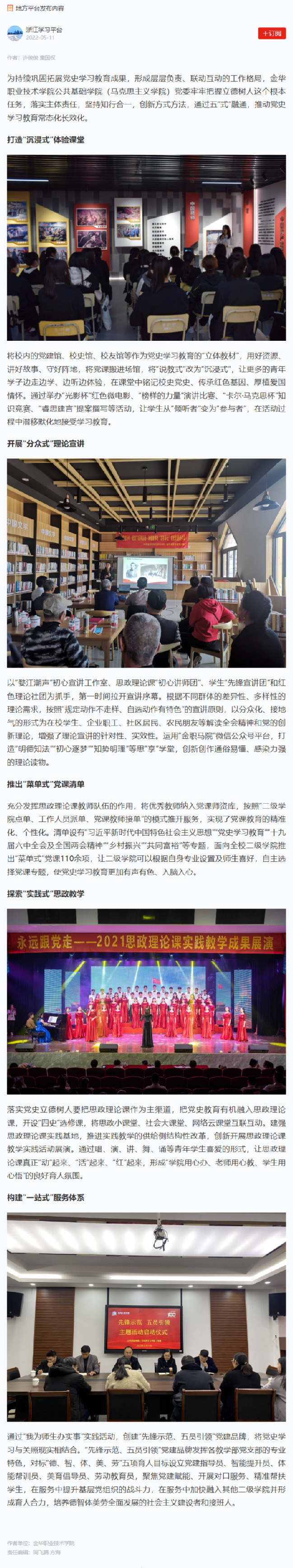 学习强国丨金华职业技术学院:五“式”融通 推动党史学习教育常态化长效化