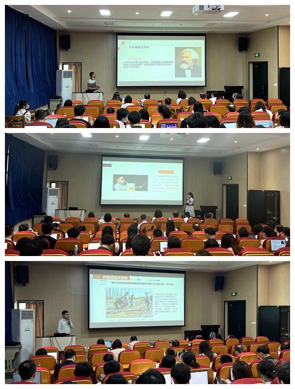 概论教学部教师董庆亮以“独立自主”为主题,围绕“什么是独立自主”“为什么要独立自主”“如何独立自主”三个层面,并结合大学生的日常生活深入剖析,最终点明主题,青年大学生要做到独立自主,就必须在吸收和借鉴他人成功经验的基础上,作出符合自身实际的人生选择。