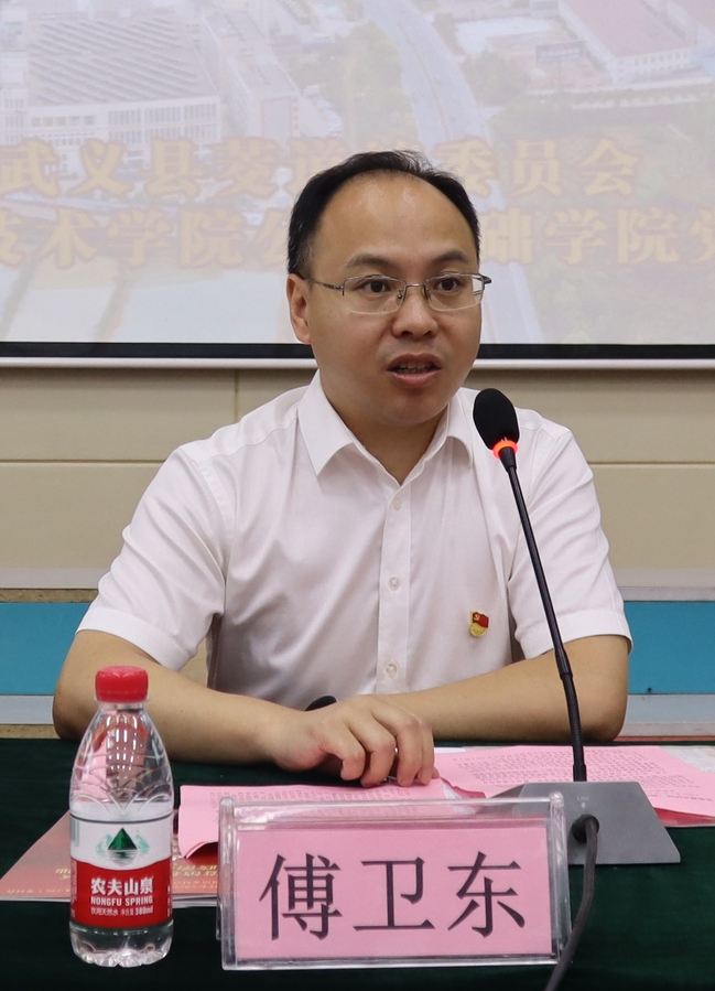 为深入开展“五融五共”新时代校地党建共同体建设,凝聚起高质量建设共同富裕强大动能,630日,金华职业技术学院公共学院(马院)党委与武义县茭道镇党委在茭道镇中心小学举行“迎七一 担使命 奔共富”大党课活动暨“融创先锋 共富莹乡”党建共同体成立仪式公共学院(马院)党委书记傅卫东院长倪淑萍及相关领导班子成员,茭道镇党委书记李臻、人大主席胡智望、党委班子成员、村(社区)“三委”成员,双方党支部书记、党员出席成立仪式。仪式由胡智望主持。