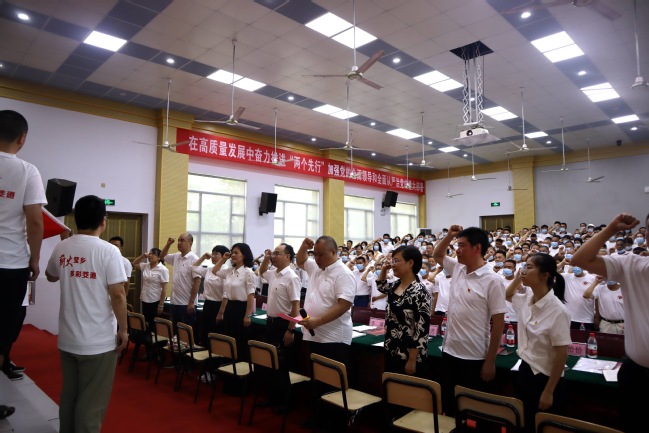 在李臻书记领誓下,双方233名党员重温入党誓词,回望初心,强化思想入党。随后,公共学院党支部书记张志坚以“实现共同富裕 共享美好生活”为主题,从“为什么要推进共同富裕建设”“共同富裕为什么要在浙江先行”“浙江如何建设共同富裕示范区”三个方面深入浅出地为党员上了一堂生动地党课。青年宣讲员王婧、张嗣尧精心设计,分别以“七个音符奏响奋进强音”“共富之问奋斗做答,共富之路我们并肩”为题作现场宣讲,为共同发展注入精神动力!