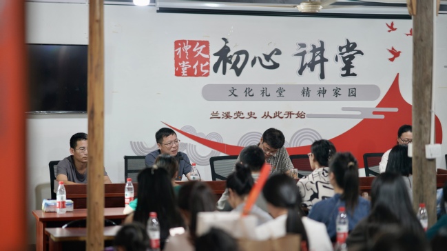 会后,在上新屋村的初心讲堂里,思政基础党支部教师党员邹婷以中国传统器乐为引,为大家讲述了一堂以“传承弘扬优秀传统文化”为主题的生动党课。传统文化衰落原因、传统文化的创造性转化与发展、个人在文化传承中的重要作用等等问题,都在邹婷老师的授课中被娓娓道出。
