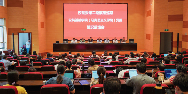 学校纪委办、组织部、巡察办负责人,第二巡察组全体人员,公共基础学院(马克思主义学院)中层及以上干部、近5年调离及退休的原领导班子成员、教师代表参加了会议。