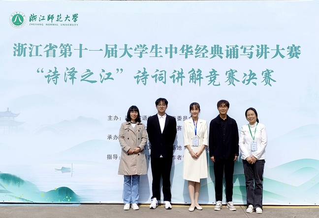 近日,浙江省第十一届大学生中华经典诵写讲大赛“诗泽之江”诗词讲解竞赛决赛在浙江师范大学落下帷幕。由我院教师吴少平、张银枝指导的师范学院张馨心同学,张银枝、黄延锋指导的信息学院徐子立同学,吴少平、陈宣羽指导的信息学院李启亮同学分别获得一、二、三等奖。其中,张馨心还获得了今年8月份举办的第五届中华经典诵写讲大赛“迦陵杯·诗教中国”诗词讲解全国总决赛大学生组一等奖。
