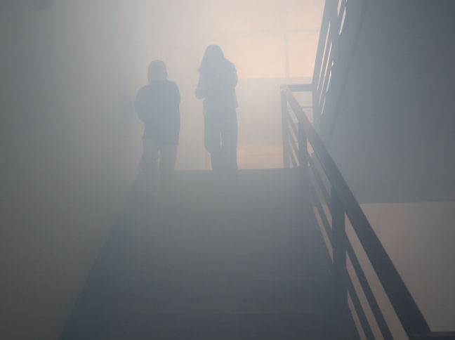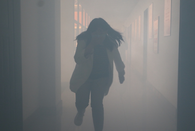 活动采取消防知识现场讲解和实际操作相结合的方式,在活动现场,学院办公室副主任蔡勤先给大家送上消防知识“大餐”,详细讲解了日常火灾逃生知识。在随后进行的消防逃生疏散体验环节,老师们手捂毛巾,按照指示牌的指引,紧靠墙壁,屈膝前进通过浓烟区域,顺利找到出口逃出。