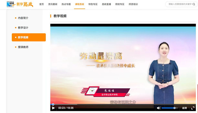 该作品是我校劳动教育理论必修课程第三篇章《劳动最崇高》的重点内容,聚焦“责任”说“崇高”,从劳动推动国内区域发展与开展国际对外援助两个纬度开展教学。一方面,聚焦国内,阐明劳动者可以授人以渔,推动区域发展,以优秀校友张开荣助力乡村振兴、“留守青年”推动湖州发展等榜样事迹为载体,涵盖劳动是脱贫解困的必由之路、劳动是推动区域发展的根本动力、普通劳动者也能推动区域发展等主要内容。另一方面,放眼世界,阐明劳动者可以走出国门,携手为人类社会作贡献,以中国劳动者对外援助的具体事例为载体,涵盖大国责任与对外援助、平常劳动不平常的意义、贡献人类高职生也行、跟着国家走出去等主要内容。