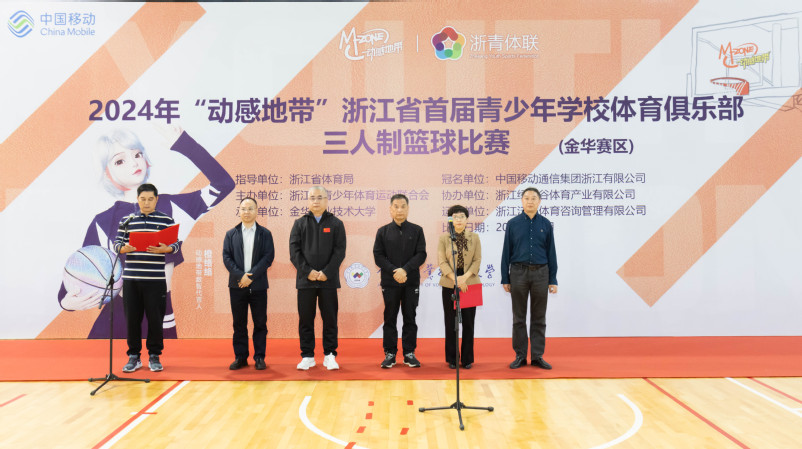 近日,2024年“动感地带”浙江省首届青少年学校体育俱乐部三人制篮球比赛(金华赛区)在金华职业技术大学火热开赛。浙江省体育局原党组副书记、副局长、浙江省青少年体育运动联合会会长鲍学军,金华职业技术大学副校长、党委委员卢小珍,金华市体育局党委委员、金华市体育总会专职副主席卢国胜,金华市教育局职成高教处处长唐川,公共基础学院(军事与体育工作部)负责人和来自金华、绍兴学校体育俱乐部的34支参赛队伍出席开幕式。