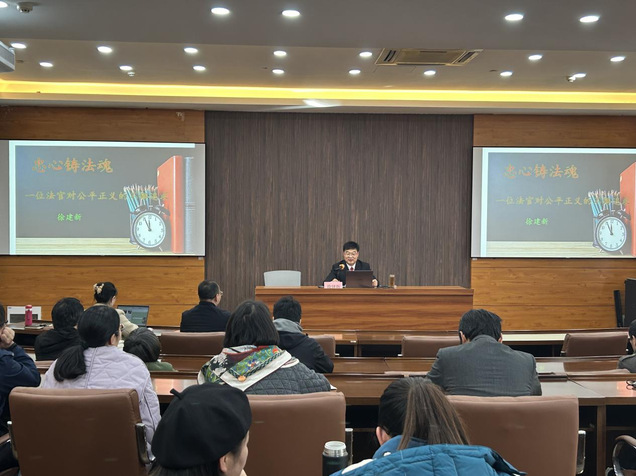 在第十一个宪法日即将来临之际,为进一步提升学院教师的法律意识,树立正确的法治观念,促进全体教职工遵纪守法的主动性和自觉性,11月29日下午,公共基础学院(军事与体育工作部)邀请原浙江省高级人民法院副院长、党组成员徐建新来校作了题为“忠心铸法魂——一位位法官对公平正义的不懈追求”的专题讲座。讲座由公共基础学院(军事与体育工作部)负责人主持。