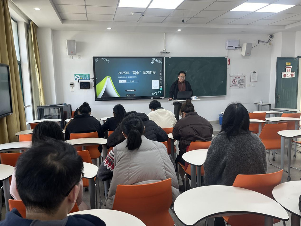 会上,王金生带领全体成员学习两会内容和精神,详细解读了两会精神的核心要义,着重介绍了政府工作报告中关于教育、科技创新等重点领域的部署和要求。