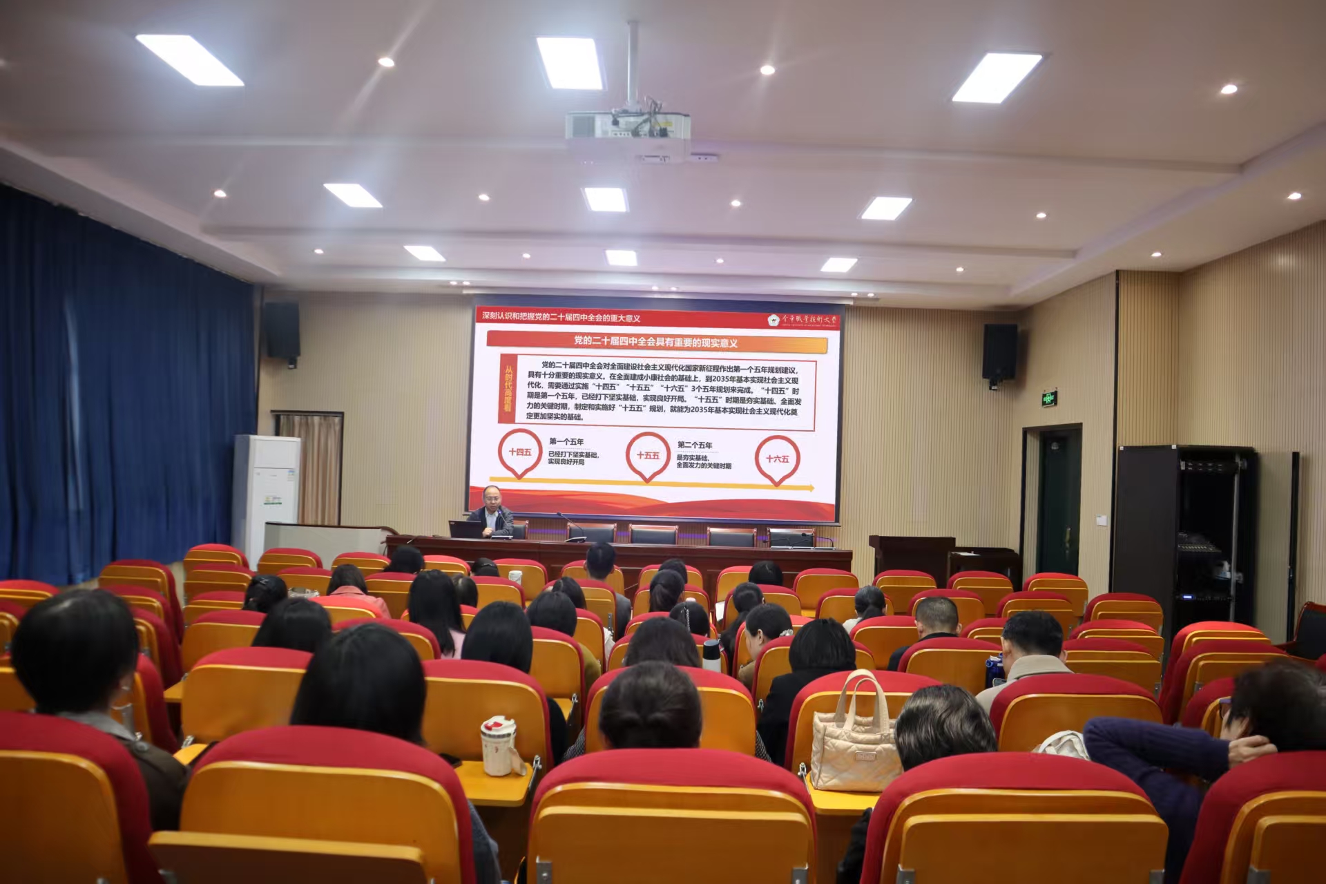 为深入学习贯彻党的二十届四中全会精神,切实把思想和行动统一到全会精神与部署上来。11月14日,学院党委召开专题宣讲会,院长傅卫东、党委书记薛俊强分别作宣讲,全面系统学习全会精神。学院党政领导班子成员、全体教职工参加学习。