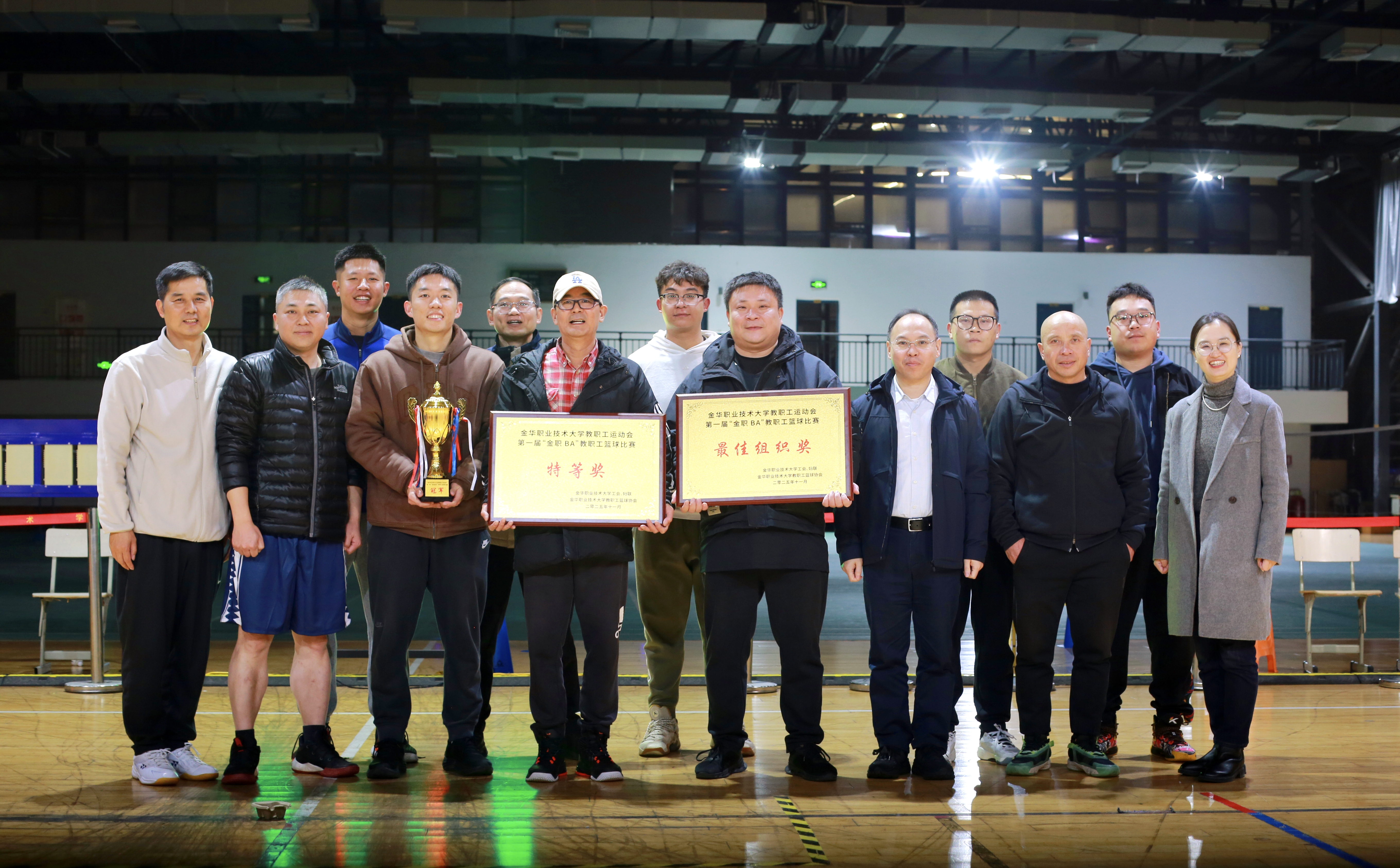 11月21日晚,金职大第一届“金职BA”教职工篮球赛在南体育馆落下帷幕。经过激烈角逐,公共基础学院(军事与体育工作部)/马克思主义学院教职工篮球队凭借出色发挥,摘得本届赛事冠军。