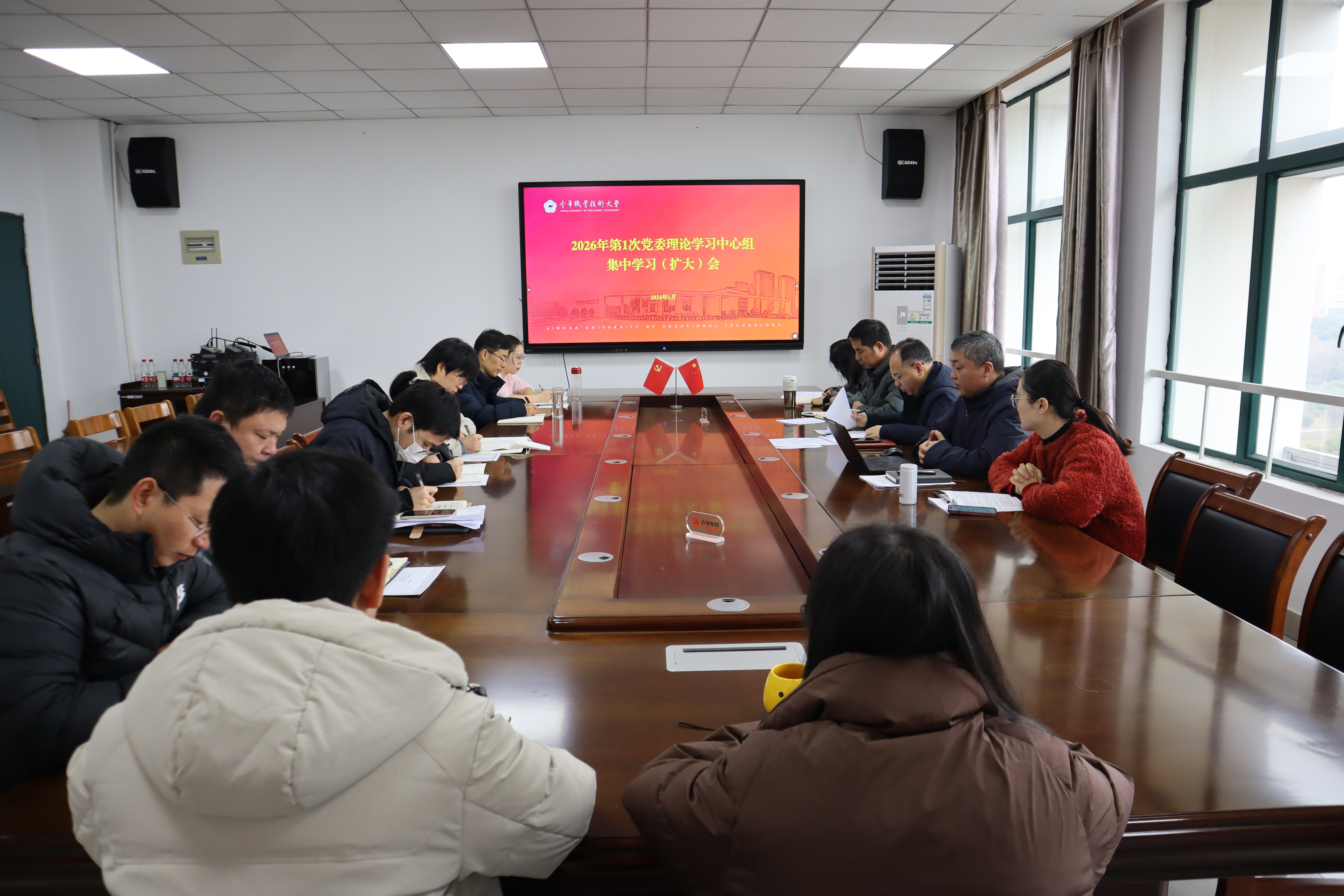 1月26日上午,学院党委召开2026年度第1次党委理论学习中心组集中学习(扩大)会,专题学习中国共产党第二十届中央纪律检查委员会第五次全体会议及相关内容,会议由党委书记薛俊强主持,学院党委领导班子成员、各部门负责人、党支部书记参加学习会。